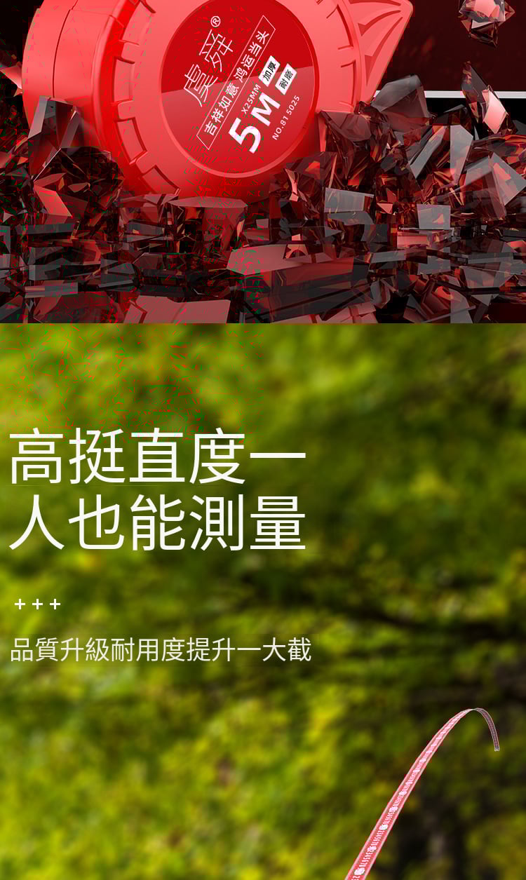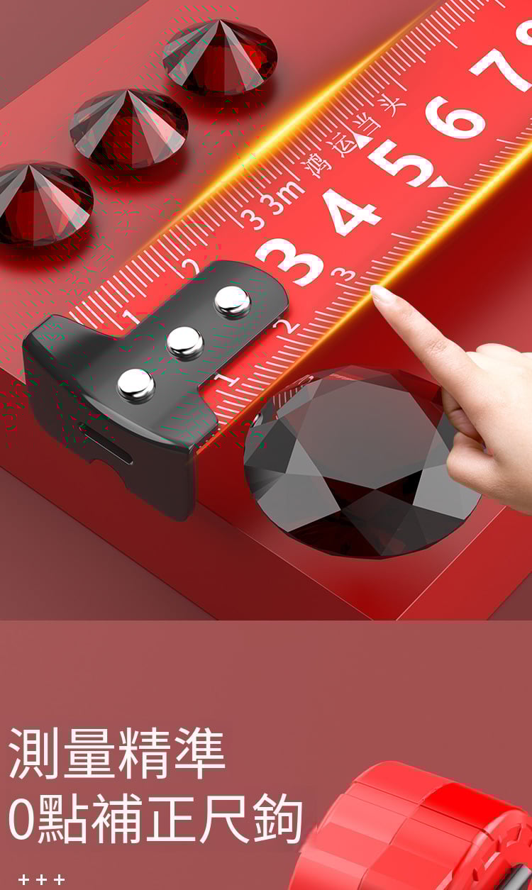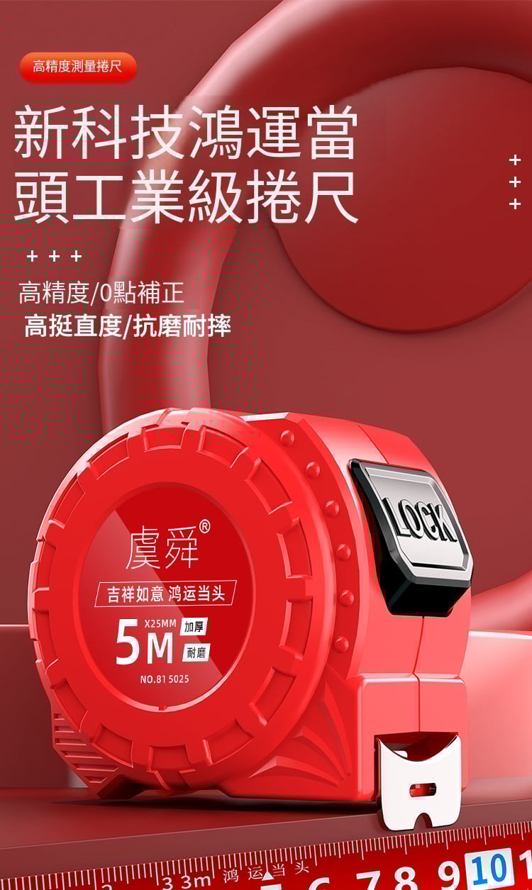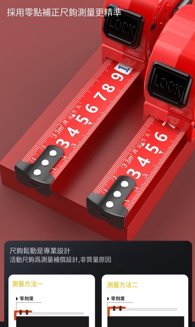 【紅鴻運鋼捲尺】精確度高,適用於各種場合的測量需求,輕巧便攜,方便攜帶到任何地方,無論是家庭裝修還是工地施工,這款捲尺都能滿足您的需求