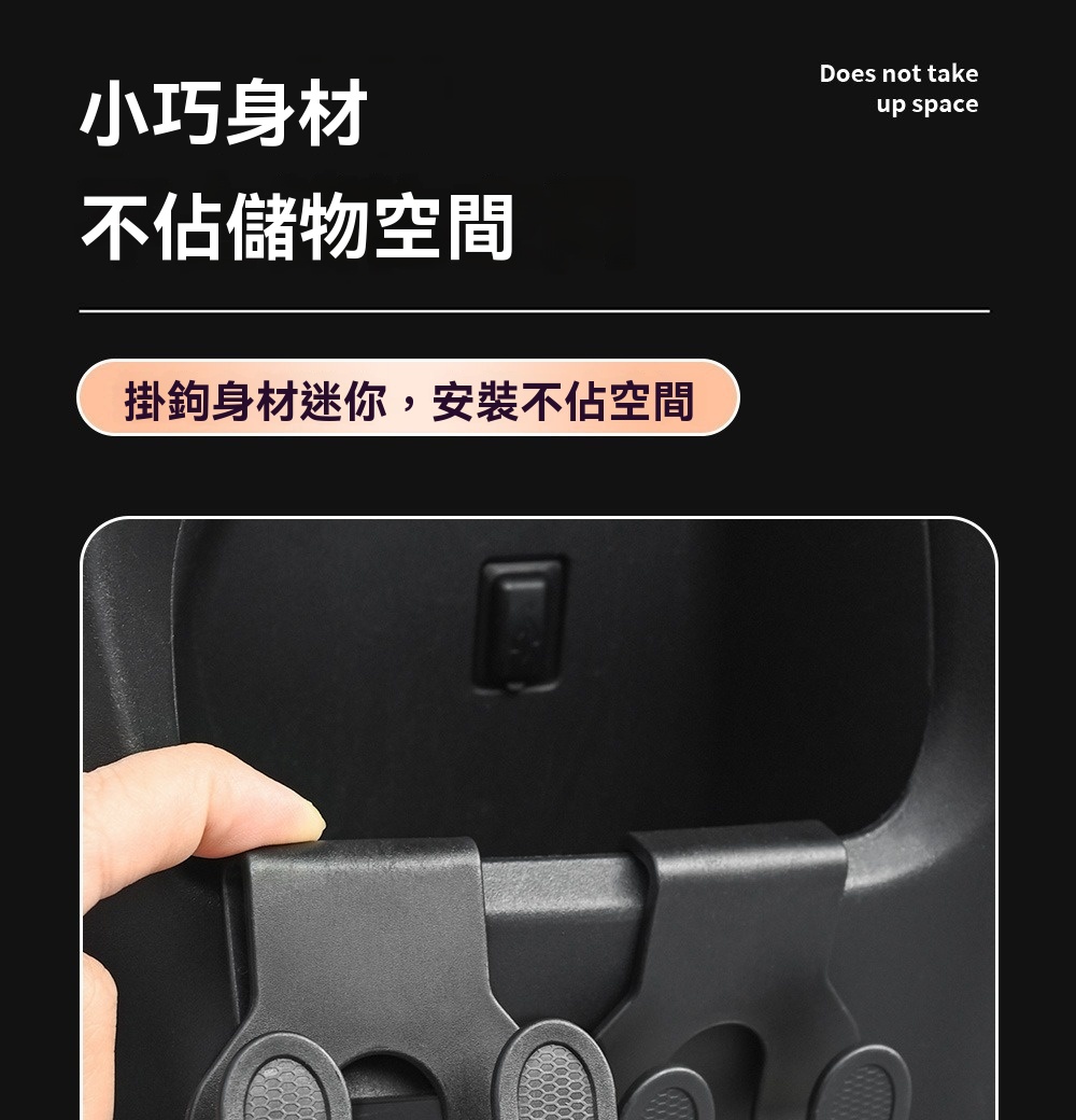 掛鉤設計「迷你輕巧」,安裝在置物盒邊緣/內側,完全不擠佔原本的儲物空間,小空間也能「高效利用」