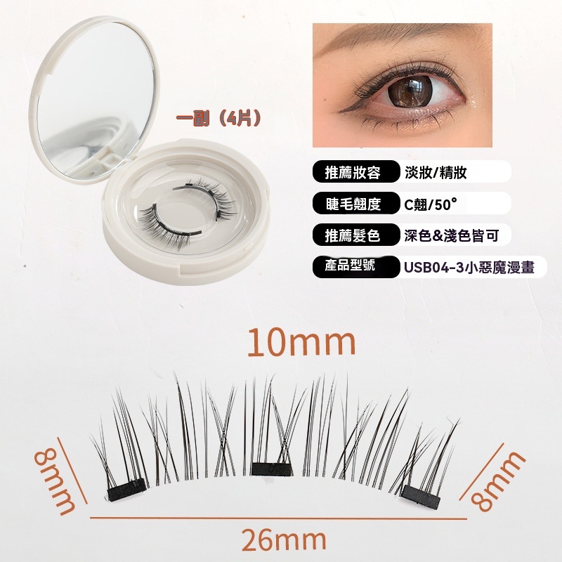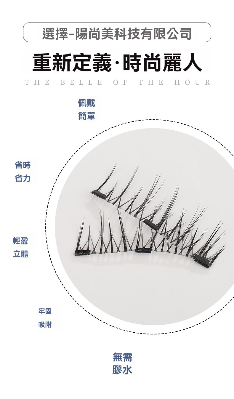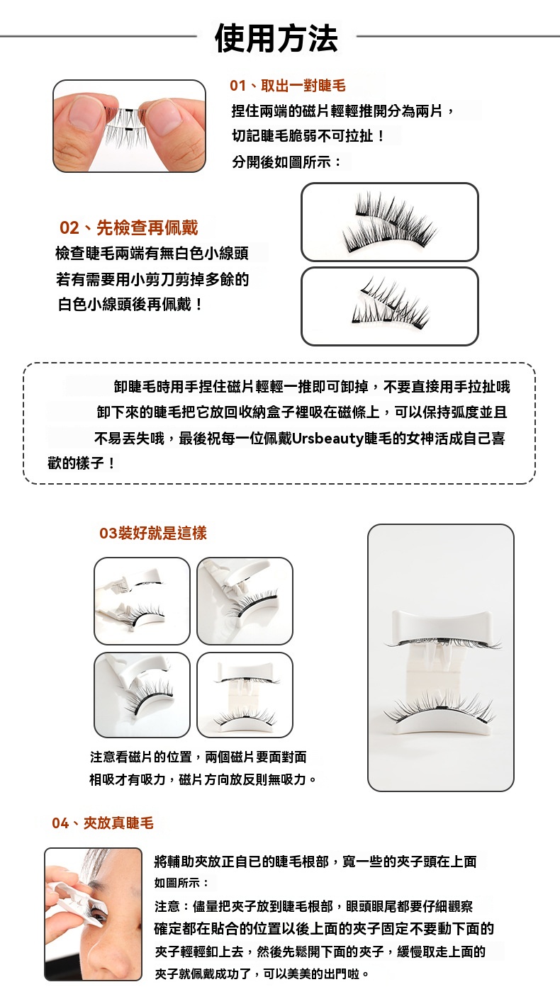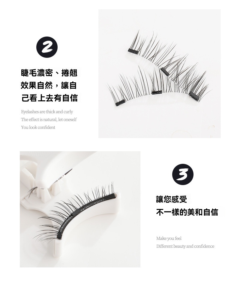 採用雙磁條設計(假睫毛+磁吸眼線/輔助器),靠磁力吸附固定,不用擠膠水、不用等乾燥,早上趕時間「一秒貼好」,化妝效率翻倍;
