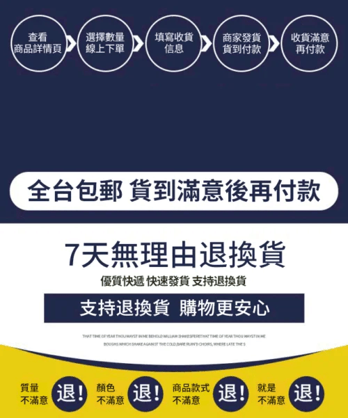 支持貨到付款包運!收到貨有任何疑問請聯繫我們在線客服! 同時請附上您預留的收件人聯繫電話,以便我們能快速的給您及時處理,祝您購物愉快!!!