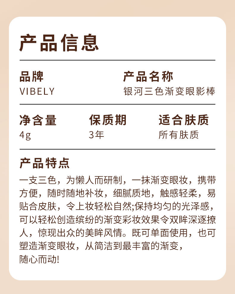 一抹漸變!手殘黨3秒成妝,早八人多睡10分鐘神器。絲滑膏狀質地,手指一暈就自然, 飛粉?結塊?暈染不均?這輩子不認識!筆管大小塞口袋,電梯裡、公車上都能補妝, 同事還以為你天生眼睛這麼好看